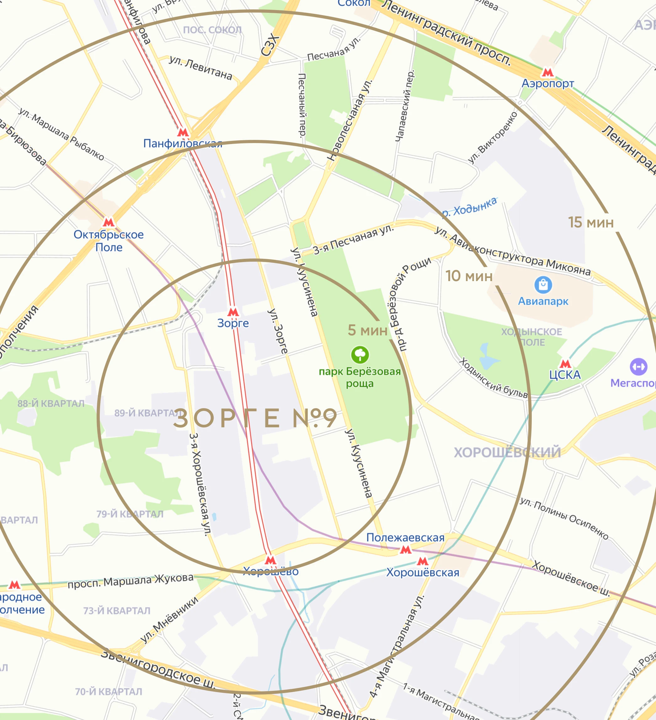 До станций метро «Полежаевская» и «Хорошевская» всего несколько минут пешком. «Зорге», «Хорошево» Московского центрального кольца тоже в шаговой доступности. Две станции на скоростном поезде — и вы в «Москва-Сити».